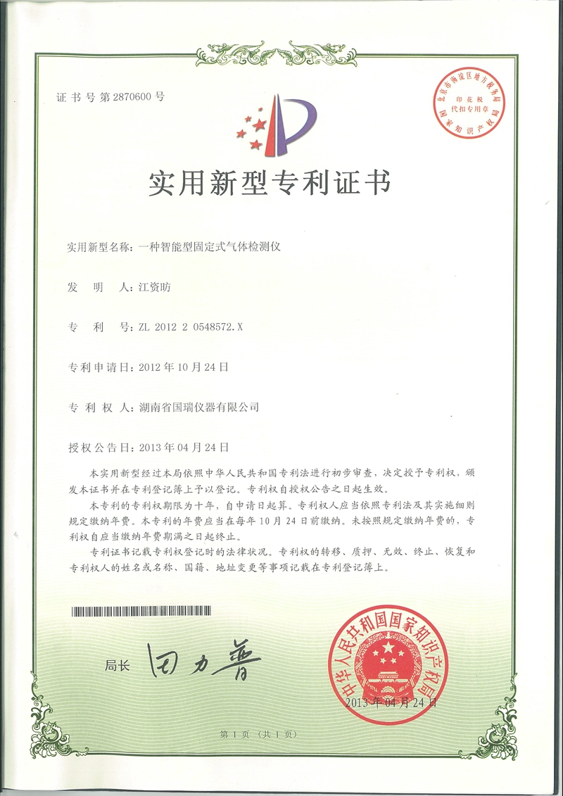 一種智能型固定式氣體檢測(cè)儀專利