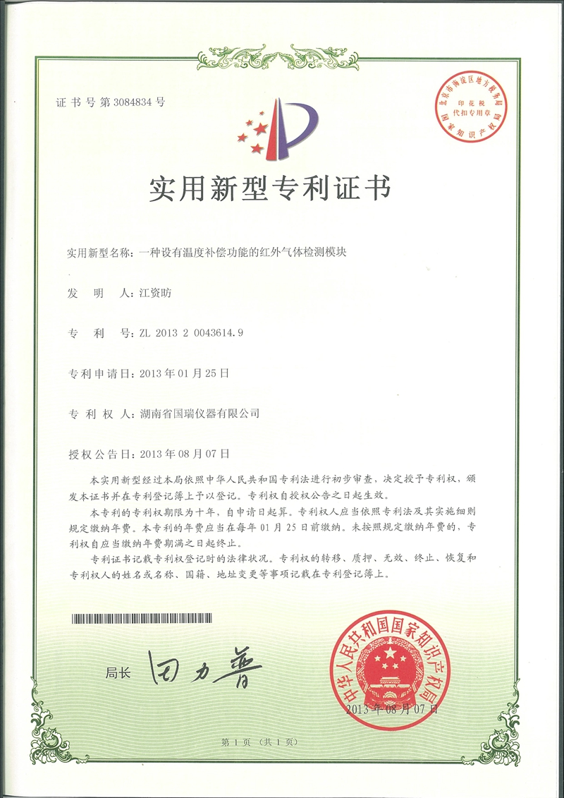 一種設(shè)有溫度補(bǔ)償功能的紅外氣體檢測(cè)模塊專利