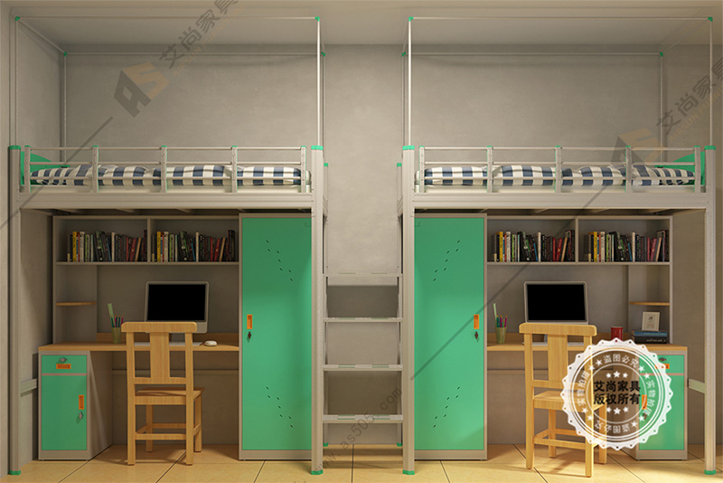 大學(xué)生宿舍一般是4人到六人間宿舍,中學(xué)生普遍是6人間到8人間宿舍,當(dāng)然也有一些好的中學(xué)有四人間宿舍,艾尚家具作為生產(chǎn)研發(fā)學(xué)生宿舍床的廠家,下面這款床專為高等院校研發(fā)設(shè)計(jì)的,合適于四人間。