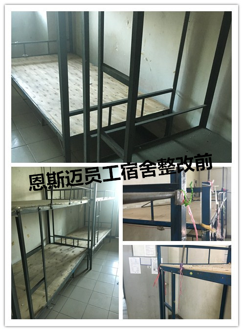 ? 員工公寓床整改前 深圳恩斯邁電子有限公司為臺灣股票上市公司微星科技股份有限公司(全球前五大,臺灣前三大電腦主板生產企業)透過其控股的英屬維爾京群島恩斯邁國際有限公司轉投資于大陸的全資子公司,廠區面積占地20萬平方米,全廠員工10000余人,主要產品為電腦主板、顯卡、附加卡、系統組裝及光電產品。