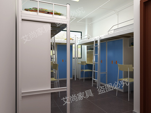 (兩連體雙層床3D圖) 廣東艾尚家具生產宿舍家具,免費現場測量,定制您的宿舍整改方案,客戶的選擇就是對我們的信任與認可,艾尚家具的小伙伴們會繼續努力,期待您來廠考察!統一免費咨詢熱線:400-0099-515!