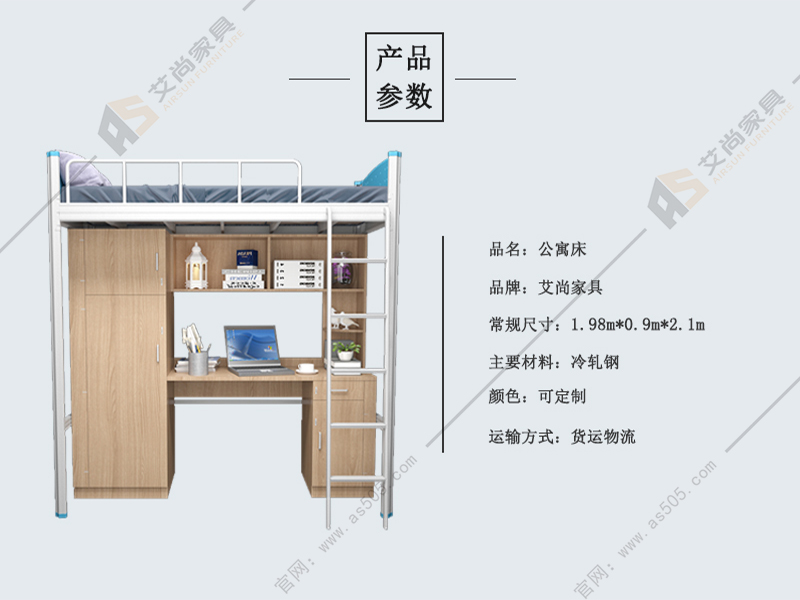 艾尚公寓床按照常規(guī)尺寸,可以分為單人位1980*900*2100mm(長(zhǎng)、寬、高)、兩連體3930*900*2100mm(長(zhǎng)、寬、高)、三連體5890*900*2100mm(長(zhǎng)、寬、高)這三種款式都可以定制,其中單人位是最受大眾喜愛(ài)的,兩連體、三連體公寓床在高校、集體宿舍比較常見(jiàn)。