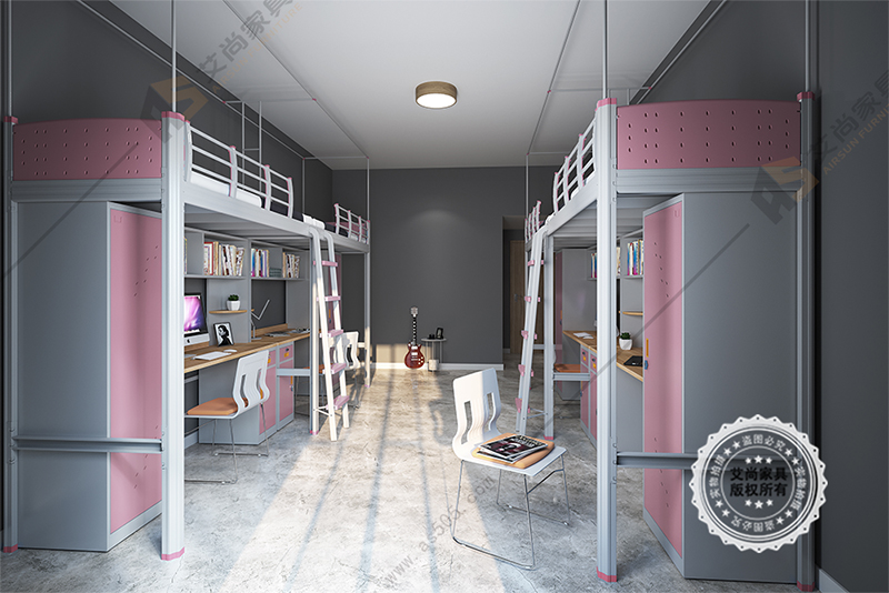 這款床一般會(huì)出現(xiàn)在大學(xué)的公寓宿舍里,床的設(shè)計(jì)是上面睡人,下面是電腦桌。跟衣柜搭配,整體看起來非常的洋氣亮眼。