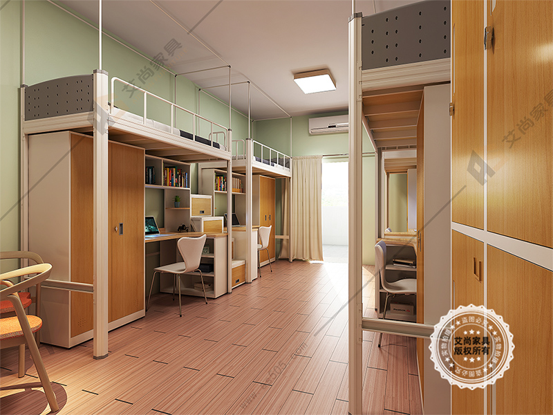 大學(xué)是宿舍生活是非常愜意,舒適的。躺在床上暢談理想和未來。和室友一起嬉鬧。這是一款比較常見的上面是床下面是桌子和衣柜,非常的人性化。這樣我們就能夠?qū)⒁路㈦娔X一起放在這里,這個(gè)其實(shí)就是連體公寓床。