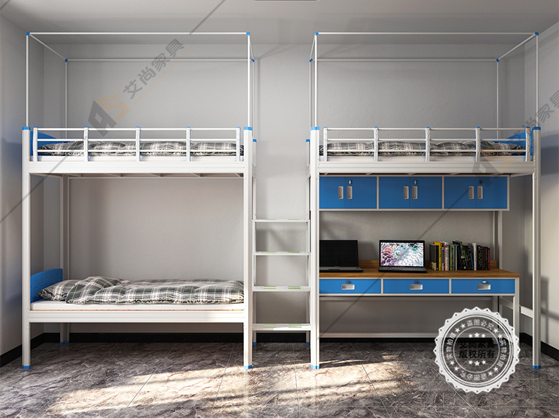 學(xué)校宿舍用的都是雙層的鐵床,學(xué)生們用的宿舍床都是有規(guī)定的,一般以長1900mm,寬900mm為標(biāo)準(zhǔn)尺寸,雖然每一個學(xué)校的宿舍上下鋪鐵床的尺寸都不太一樣的,但是偏差都不大,寬度在850-1200mm之間,長度在1800-2000mm之間。接下來艾尚家具為大家介紹幾款常見的宿舍上下鋪鐵床的尺寸。