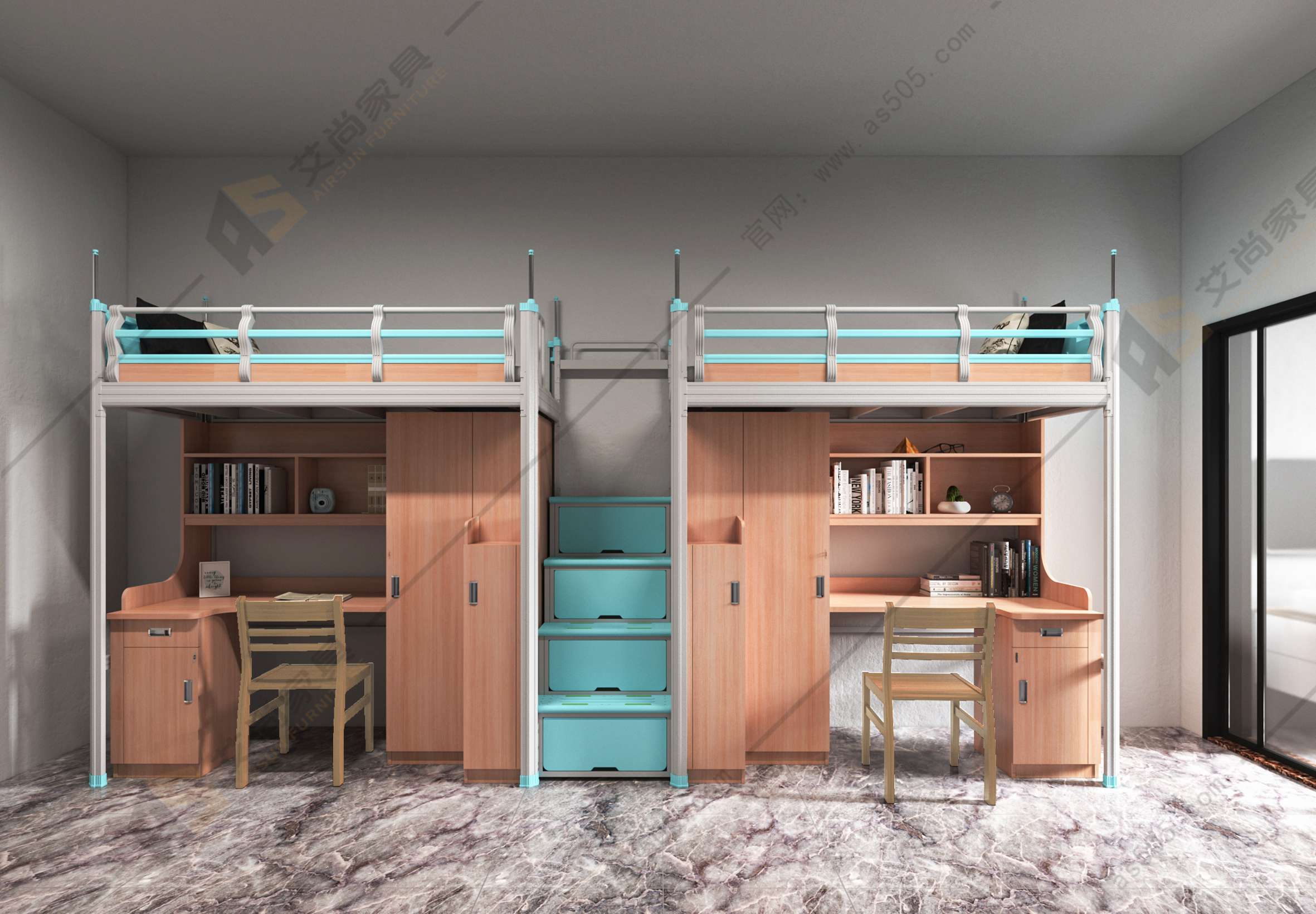 一般大學(xué)生的物品會(huì)很多,而學(xué)生公寓床上床下桌的分區(qū)設(shè)計(jì),上鋪可以睡覺(jué),下鋪可以作為書(shū)桌和儲(chǔ)物柜,充分滿足了大學(xué)生們休息+學(xué)習(xí)收納的需求!