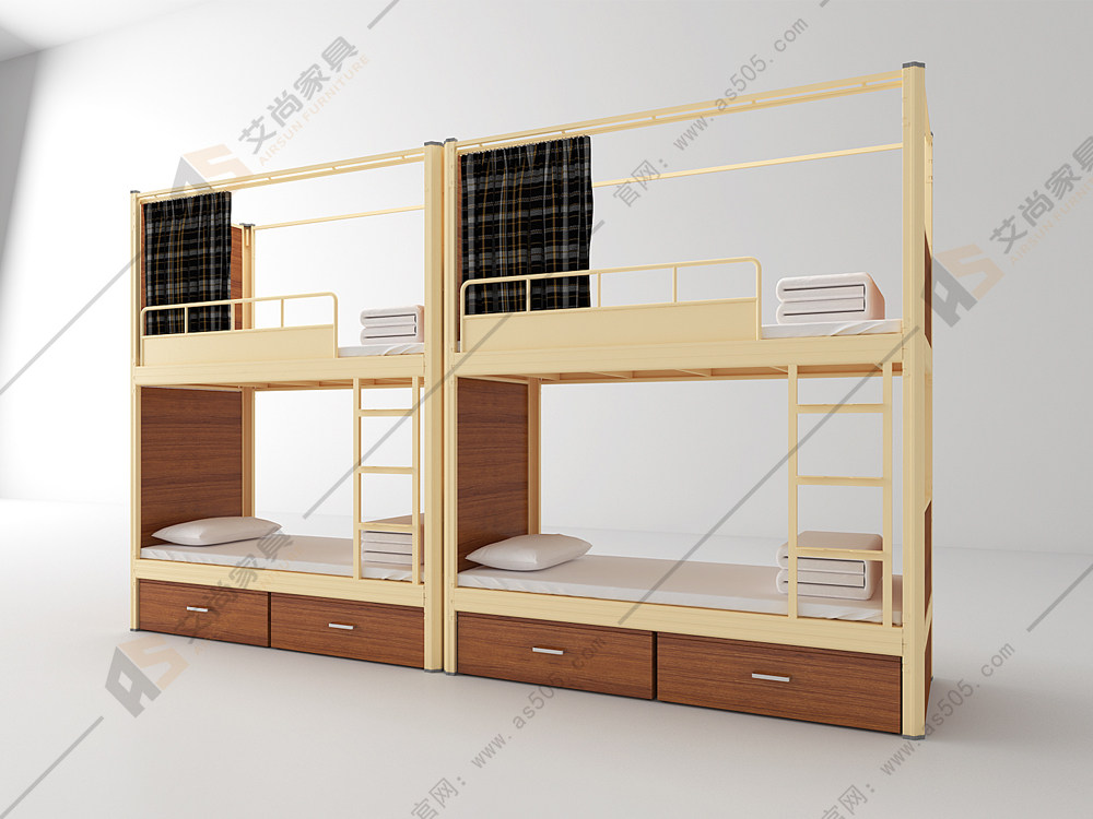 在各大高校、住宿性質的中學學校以及企業單位來說,提供給學生的公寓一般都是面積很小的,在小小的一件宿舍要住6-8人。在狹小空間卻要住很多人的情況下,上下床的優勢就體現出來了。在宿舍的房間里,利用上下床對房間驚醒合理的布局,可以使房間的每一處都能利用的恰到好處,可以很大限度的節約宿舍空間,使宿舍的空間達到更好的利用。