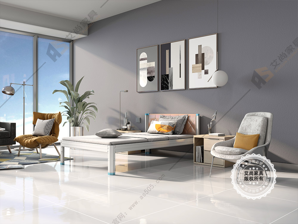 單層鐵架床是小房間,多功能空間的理想選擇,不僅滿足日常休息需要,還可做沙發,置物架,或客人的臨時居所等。如果您正在尋找一張在狹小空間放置的床,單層鐵架床使用長是您可以考慮的選項。它不占太大空間,可定制,具有現代流行的簡約元素。單層鐵架床可以適產品用于客房,兒童房,單人房等,適配性強。