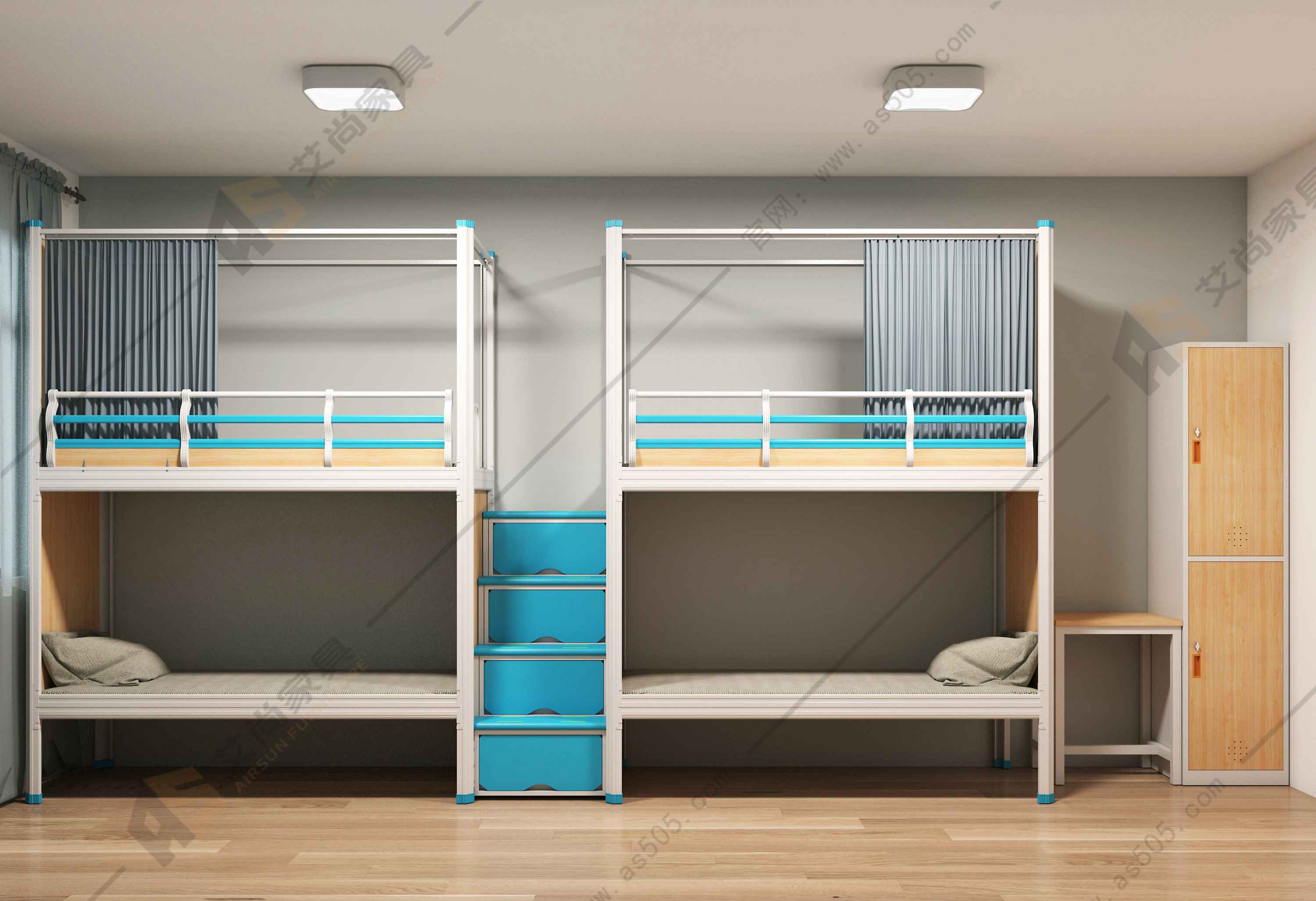 員工宿舍床除美觀實用外,艾尚還添加了很多人性化的設計,比如加高的護欄,為防止上鋪人員意外翻身掉落。腳踏板的防滑紋、夜光條,防止員工因注意力不集中、光線不佳而摔落。艾尚還可按需配置蚊帳桿,方便員工創造屬于自己的個人空間。還有衣柜、抽屜的指紋鎖、密碼鎖,也能降低員工財產丟失的風險,這樣的細節設計不僅可以方便員工日常生活的需求,也能讓員工安全感滿滿。