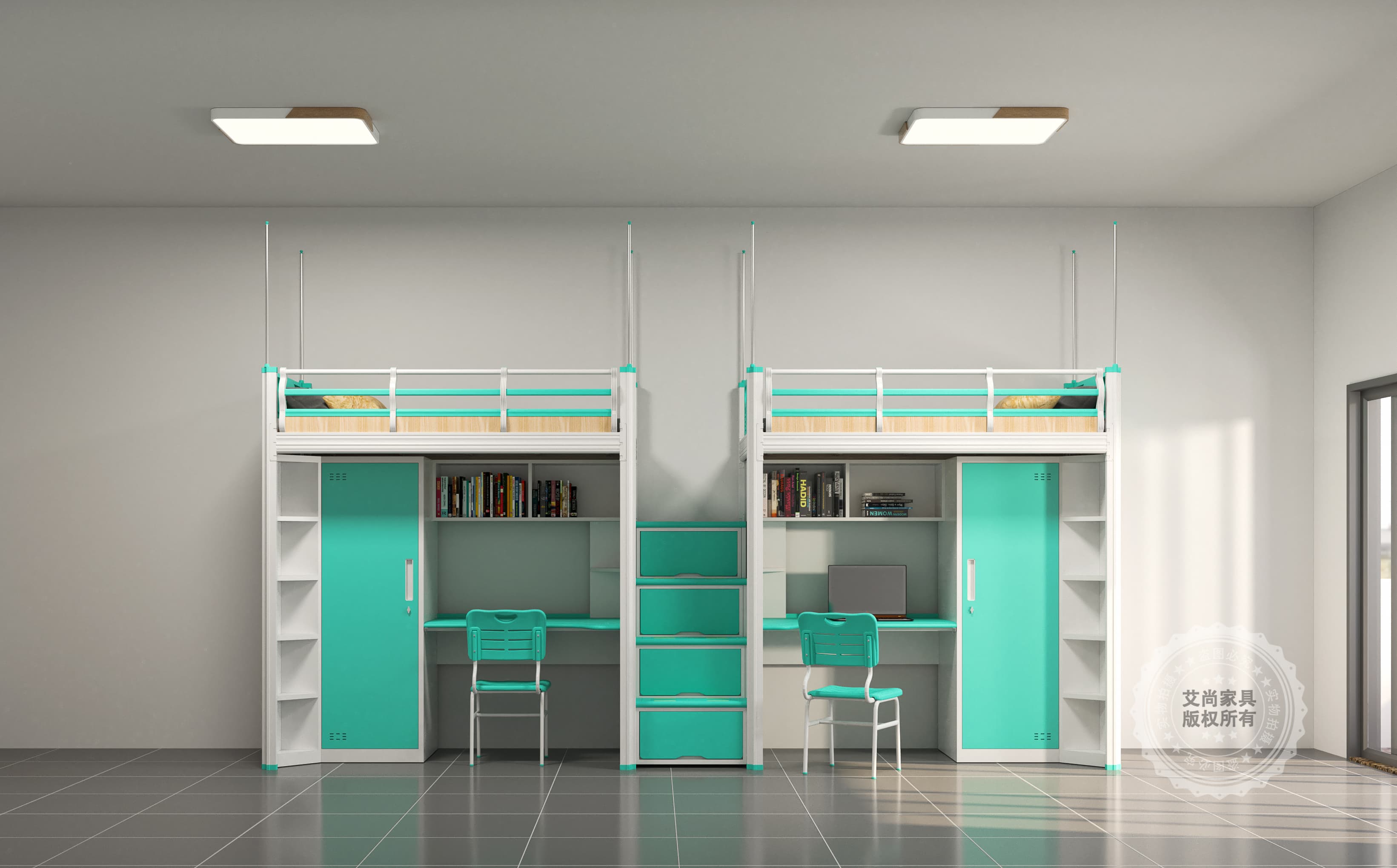 定制學校公寓床上鋪下桌一體床解決方案,為學生們的生活提供了更多便利,也是宿舍家具設計的新嘗試。讓學生們在狹小的空間里也能享受舒適的生活。