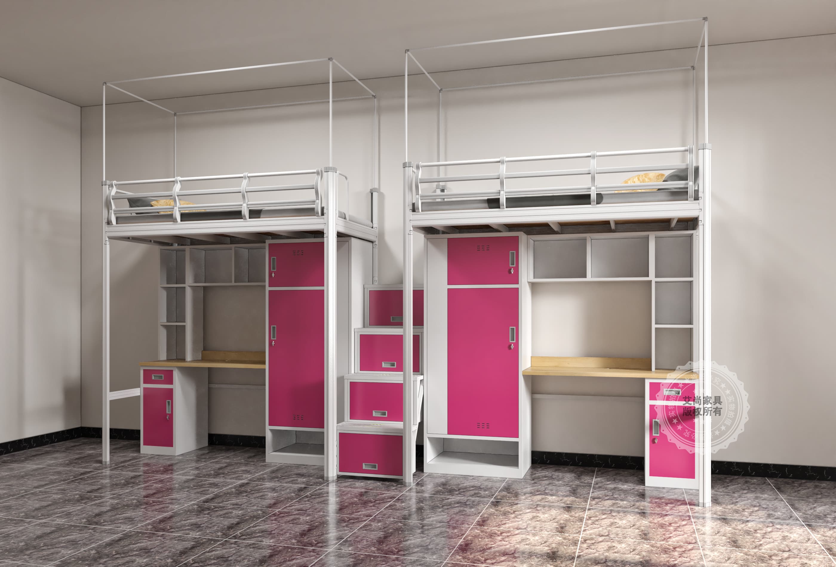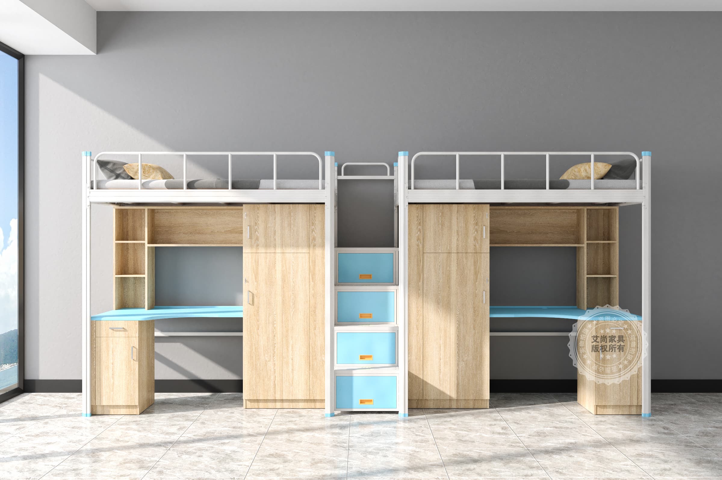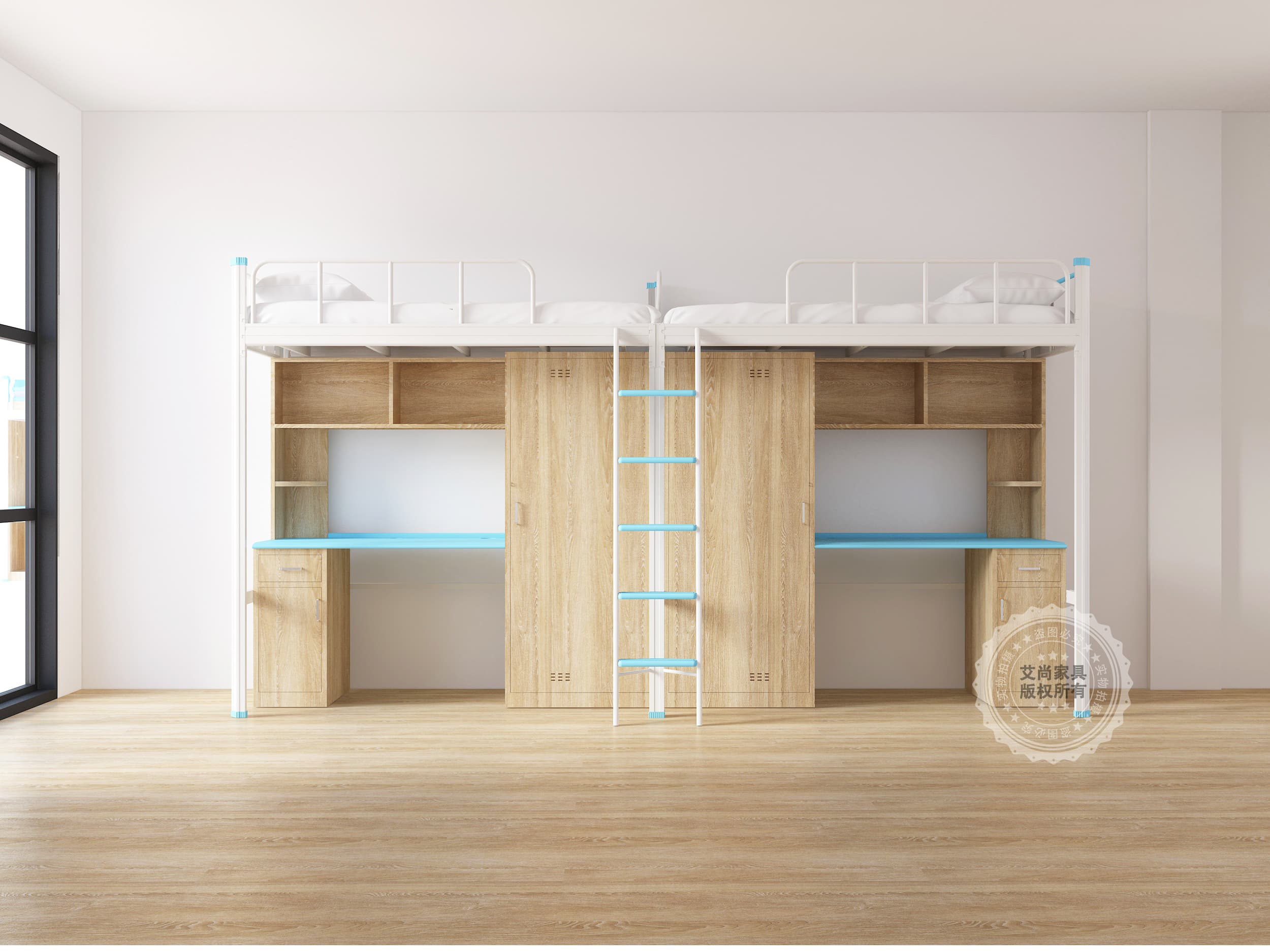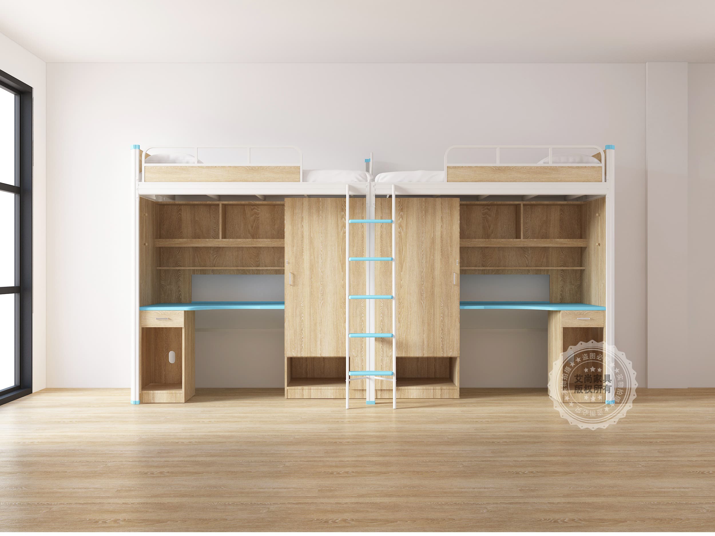 學生宿舍通常面積有限,公寓組合床將多個功能集成在一個結構中,如上方是床,下方可以是書桌、衣柜、儲物柜等,充分利用了有限的空間?。
