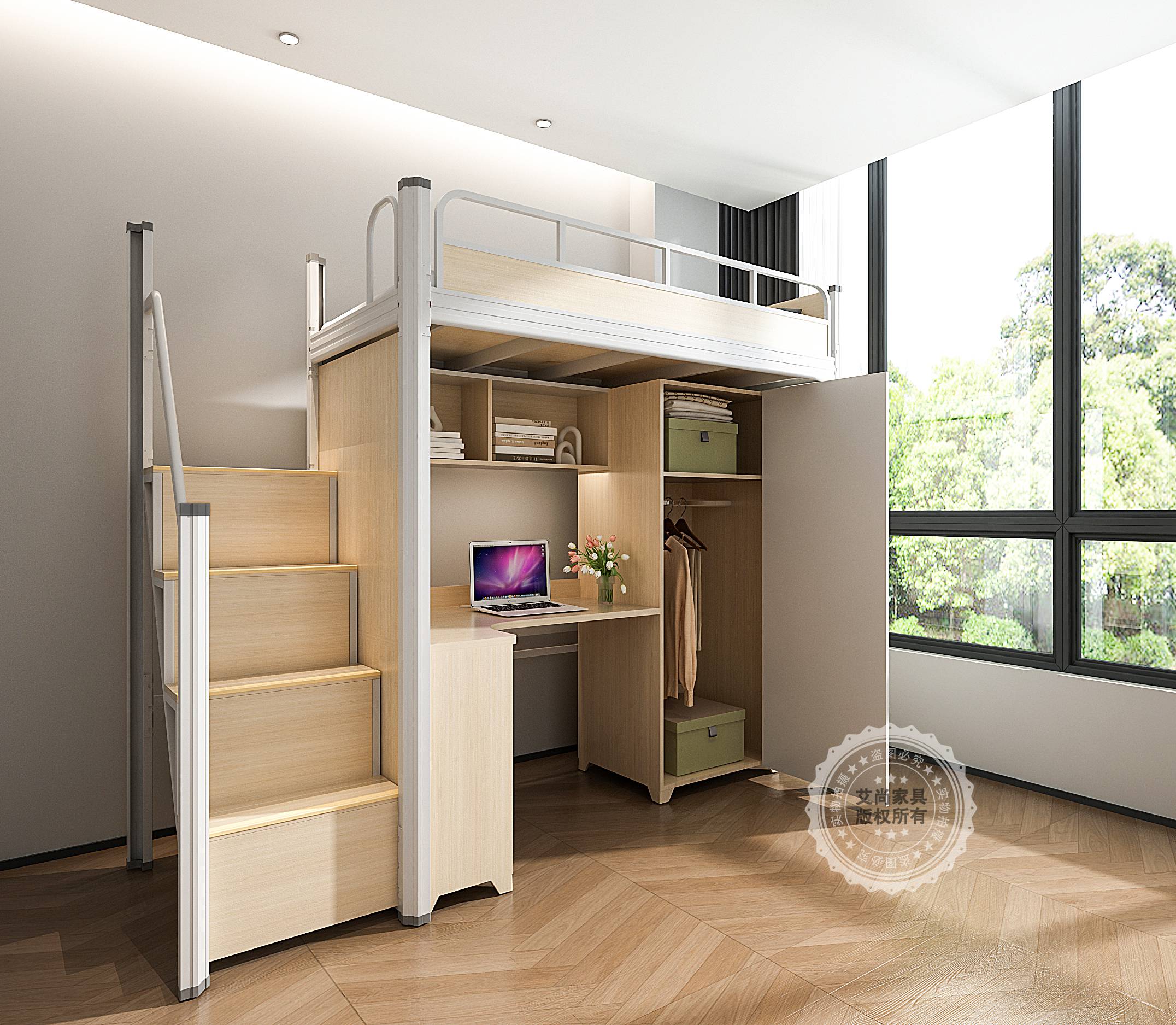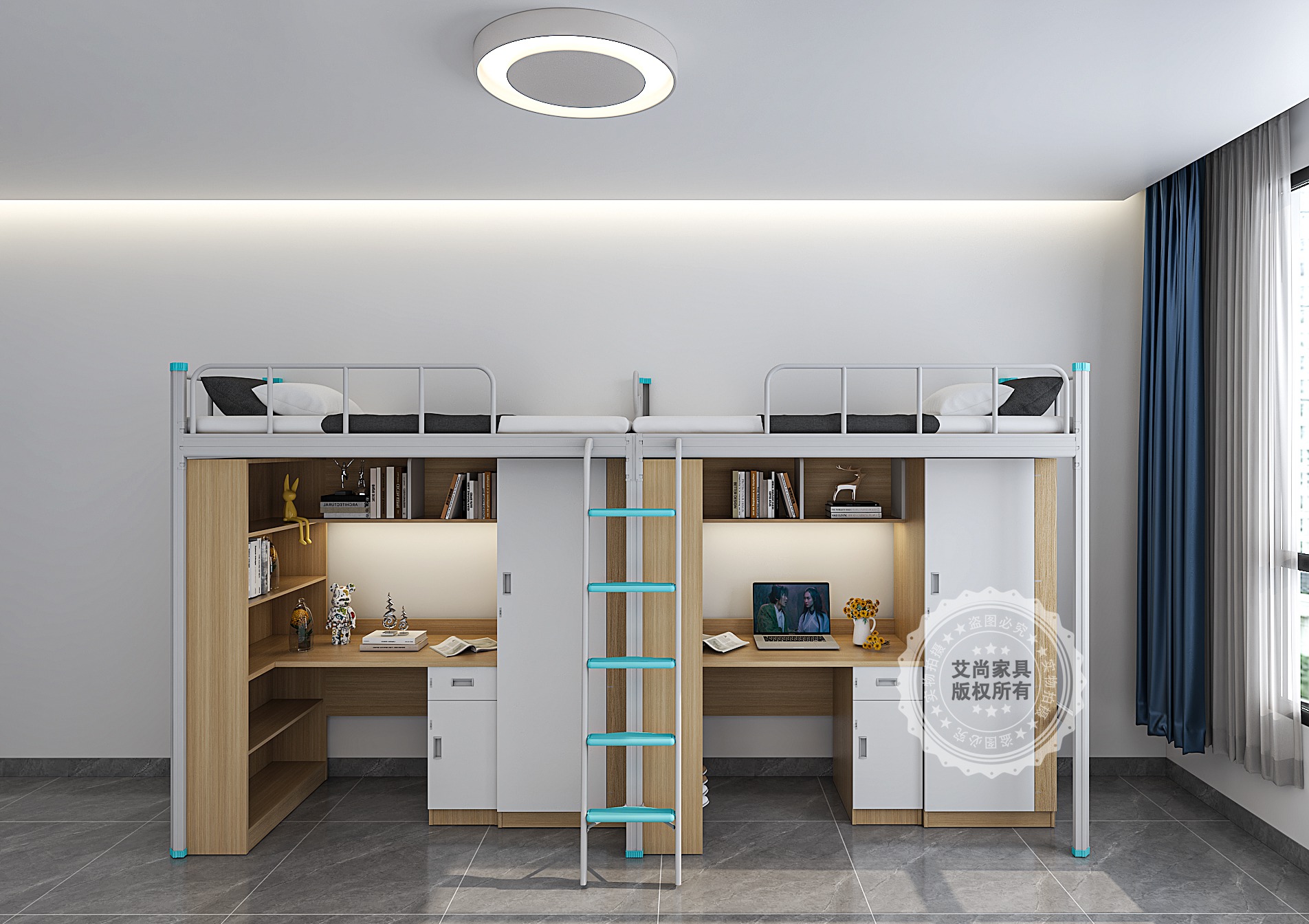 學(xué)生宿舍空間有限,而公寓床堪稱空間利用的 “魔法師”。它打破傳統(tǒng)床鋪僅滿足睡眠的單一功能,將垂直空間運(yùn)用到極致。常見的上床下桌式公寓床,上層是靜謐的睡眠區(qū),下層巧妙組合書桌、衣柜與儲物柜,學(xué)習(xí)、收納、休息功能三合一,完美解決小空間的居住難題。艾尚公寓床,書桌側(cè)邊配備多層收納格,零碎物品、行李箱都能找到安身之處,讓宿舍告別雜亂,始終保持整潔有序。