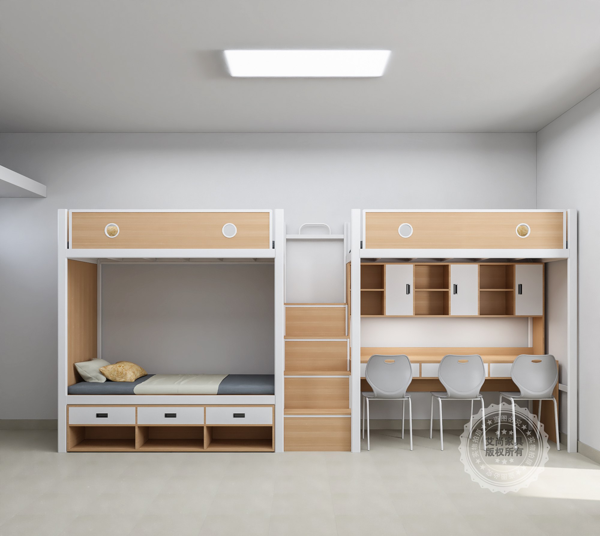 卡扣式結(jié)構(gòu)的上下鋪鐵架床是一種常見于宿舍、學(xué)生公寓或其他集體居住環(huán)境的床具設(shè)計,例如艾尚家具所推出的款式。該類床鋪最大的特點在于采用卡扣式連接方式,使各個部件能夠便捷地組裝與拆卸,不僅大幅簡化安裝流程,也提升了整體結(jié)構(gòu)的穩(wěn)定性和耐久度。