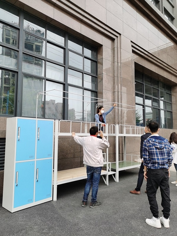 一棟樓員工宿舍雙層鐵床安裝!艾尚家具3天搞定