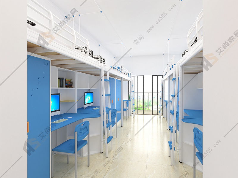 這種學生公寓床是在兩人或者四人公寓常見,一個人獨自享受整個床的區域。上面是睡床,下面則加了一個書桌,平時學習方便。顏色明亮,材質也多鋼。