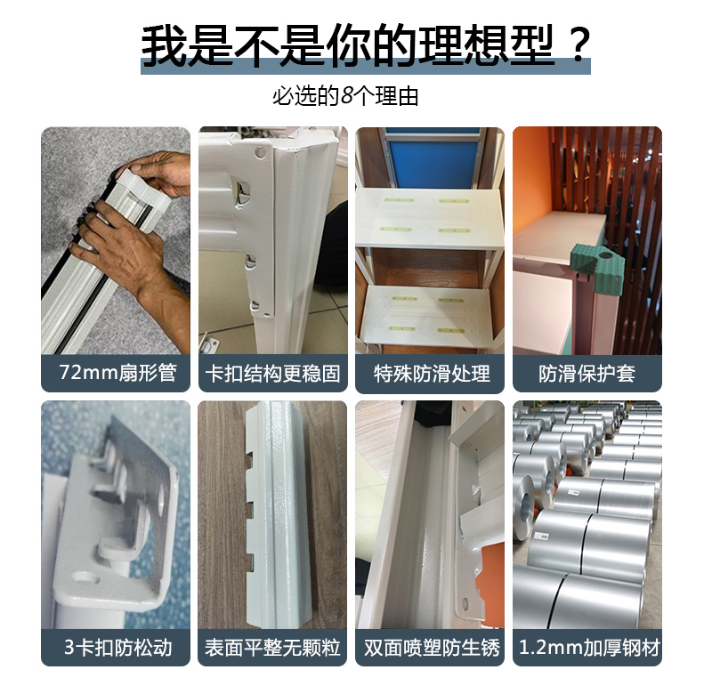 選用冷軋鋼板優(yōu)質(zhì)原材料,其里面為中空異形材,10年壽命保證。 厚度達到1.2mm,打造良心工藝。