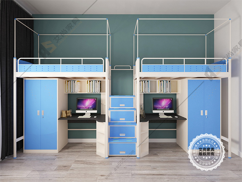 產品介紹: 艾尚家具組合式床外觀上高端大氣,并且安全舒適。組合式床采用環保0甲醛烤漆,無論悶熱潮濕都恍然如新。 做工設計上,組合式床采用卡口式連接,這種連接的優點在于承重性強,穩固性好,上床時非常平穩,不易搖晃,安全舒適,可以適應各種宿舍。