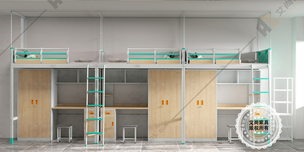 產品介紹: 艾尚家具大學三聯體公寓床外觀上高端大氣,并且安全舒適。大學三聯體公寓床采用環保0甲醛烤漆,無論悶熱潮濕都恍然如新。 廣東艾尚家具的推出公寓床都是采用無螺絲卡扣式銜接設計,利用重力向下,床架間的卡扣掛件就會向下與床架卡的越緊,用得越久越牢固,款式尺寸可以根據客戶需求或宿舍空間專屬定制。