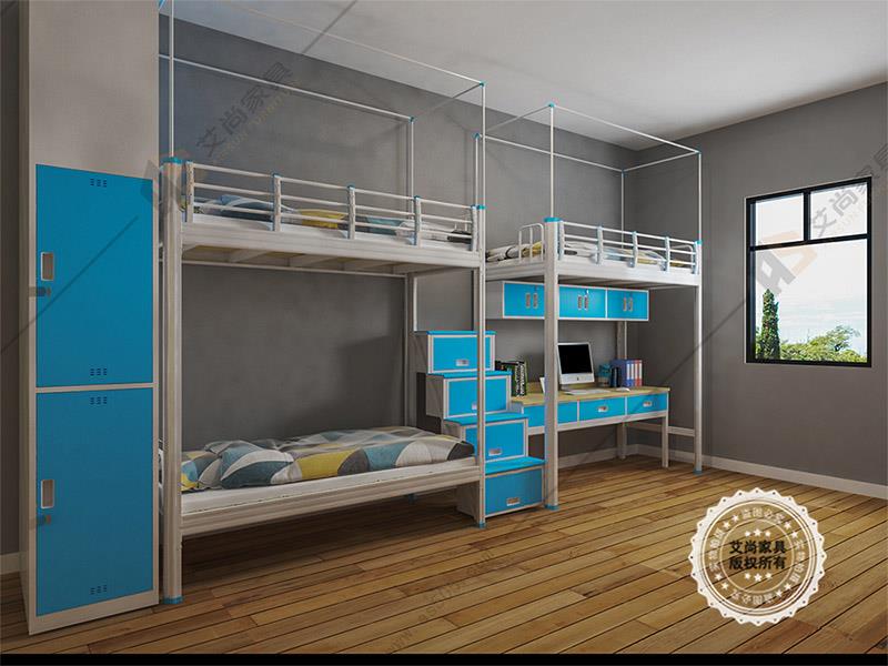 產品介紹: 艾尚家具雙層床上下鋪外觀上高端大氣,并且安全舒適。雙層床上下鋪采用環保0甲醛烤漆,無論悶熱潮濕都恍然如新。 做工設計上,雙層床上下鋪采用卡口式連接,這種連接的優點在于承重性強,穩固性好,上床時非常平穩,不易搖晃,安全舒適,可以適應各種宿舍。