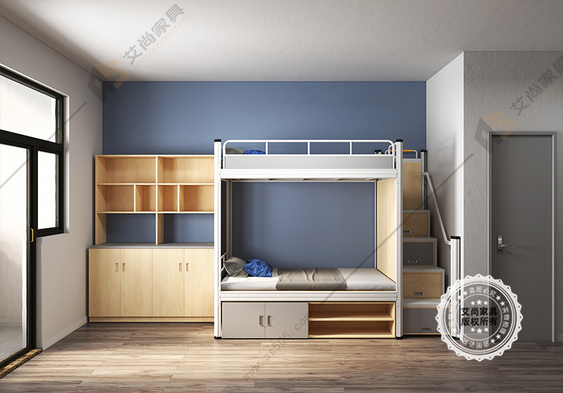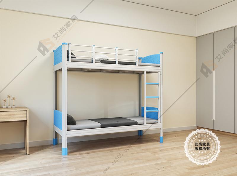 產品介紹: 艾尚家具鐵床上下鋪外觀上高端大氣,并且安全舒適。鐵床上下鋪采用環保0甲醛烤漆,無論悶熱潮濕都恍然如新。 做工設計上,鐵床上下鋪采用卡口式連接,這種連接的優點在于承重性強,穩固性好,上床時非常平穩,不易搖晃,安全舒適,可以適應各種宿舍。